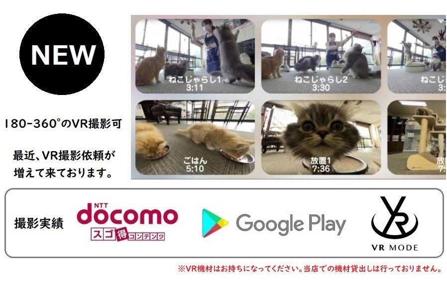 VR撮影の実績が多数あり。ご不明な点が御座いましたらお気軽にお申し付けください。